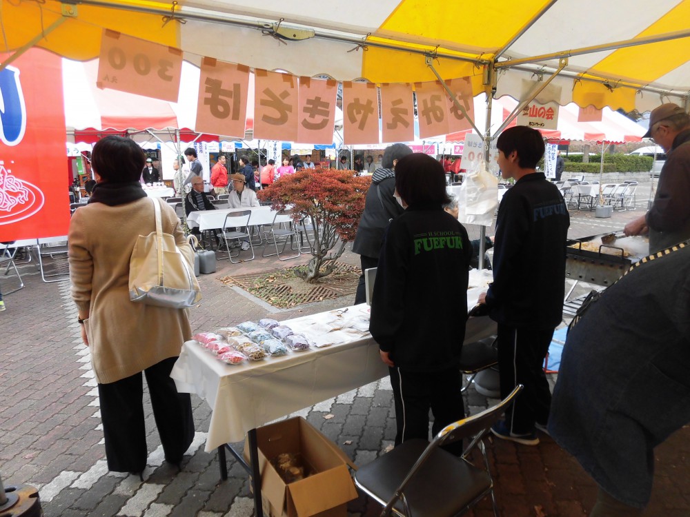 ホーム > 教育活動 > 食品化学科 > 石和福祉健康まつりに参加しました 2018年11月17日カテゴリー: お知らせ 教育活動 食品化学科 地域の方 石和福祉健康まつりに参加しました 11月11日(日)スコレーセンターで行われた福祉健康まつりに今年も食品化学科1年生が参加しました。幼児から高齢者の方まで多くの年齢層の方々に購入して頂きました。「どうやって作るの?」と尋ねられ、用意した模造紙を活用しながら説明したり、「卵や乳製品は入っているの?」とお子様のアレルギーを心配されてのお尋ねに「卵や乳製品は使っていません」と的確に答えることができました。また、向かいのテントでは、焼きそばの販売を学科生徒(ボランティア部員)がお手伝いしていました。
