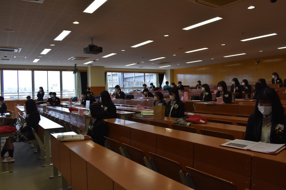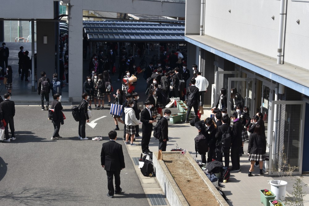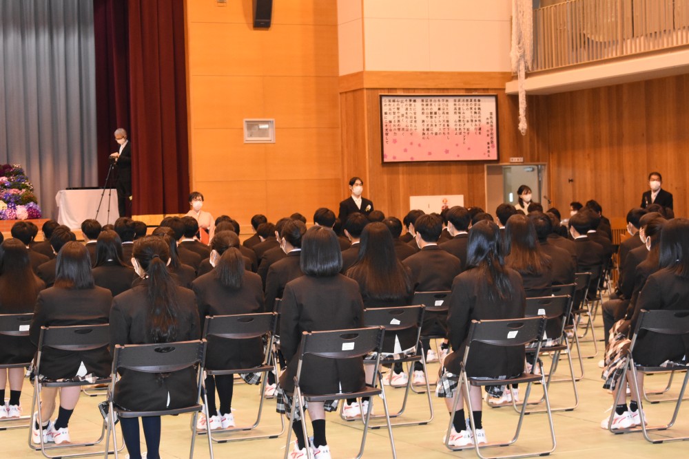 新型コロナウイルス感染症拡大にともない今年度は保護者の方の参加を見送り、教職員と卒業生のみで卒業式が行われました。