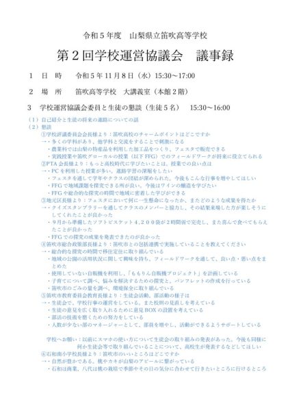16_笛吹_第2回 議事録(提出用) | 山梨県立笛吹高等学校