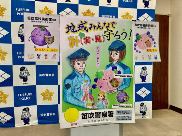 笛吹警察署企画の「果実の盗難防止と地域の見守り活動」啓発ポスターの制作に協力しました。