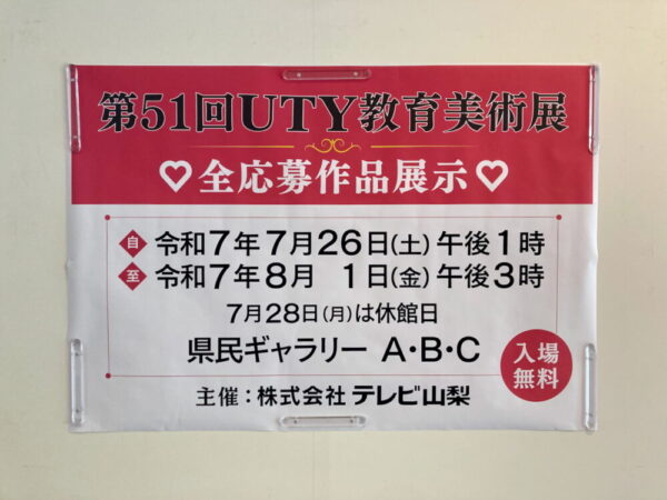 ホーム > 部活動 > 美術 > 【美術部】UTY教育美術展 優秀賞受賞 2025年7月26日カテゴリー: 部活動 美術 【美術部】UTY教育美術展 優秀賞受賞 第51回UTY教育美術展に本校美術部から6名が応募し、1名が優秀賞に、2名が佳作に選ばれました。 入賞作品をはじめ、全ての応募作品が8月1日まで県立美術館県民ギャラリーで展示されています。 暑い中ではありますが、ぜひ美術館に足をお運びください。