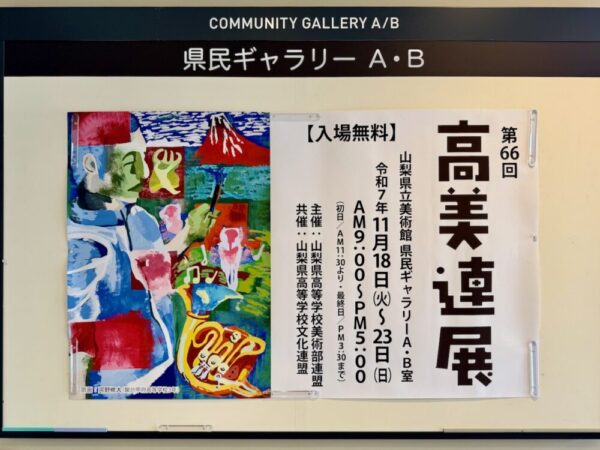 「第66回 山梨県高等学校美術連盟展」が11月18日(火)から23日(日)まで、山梨県立美術館県民ギャラリーにて開催されました。